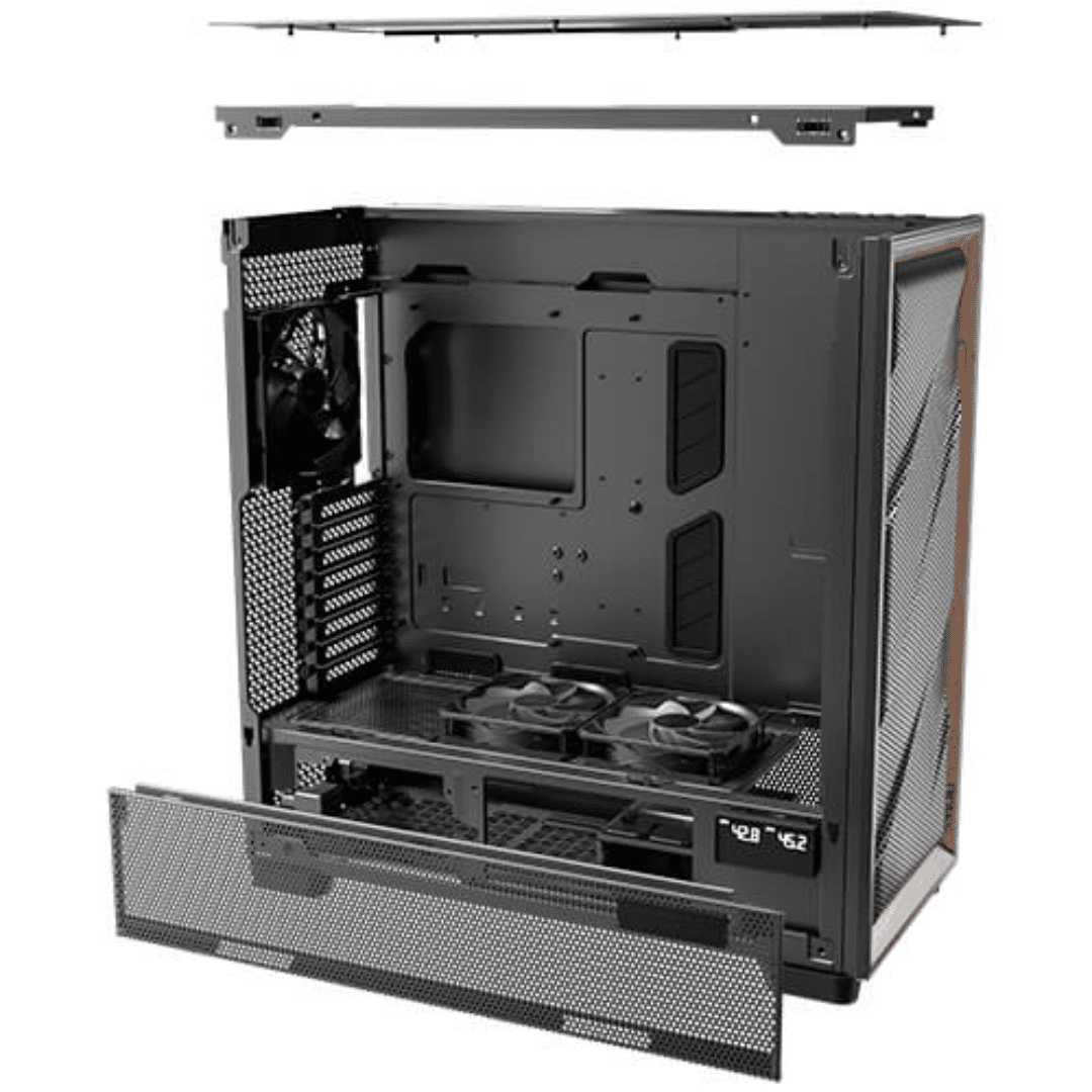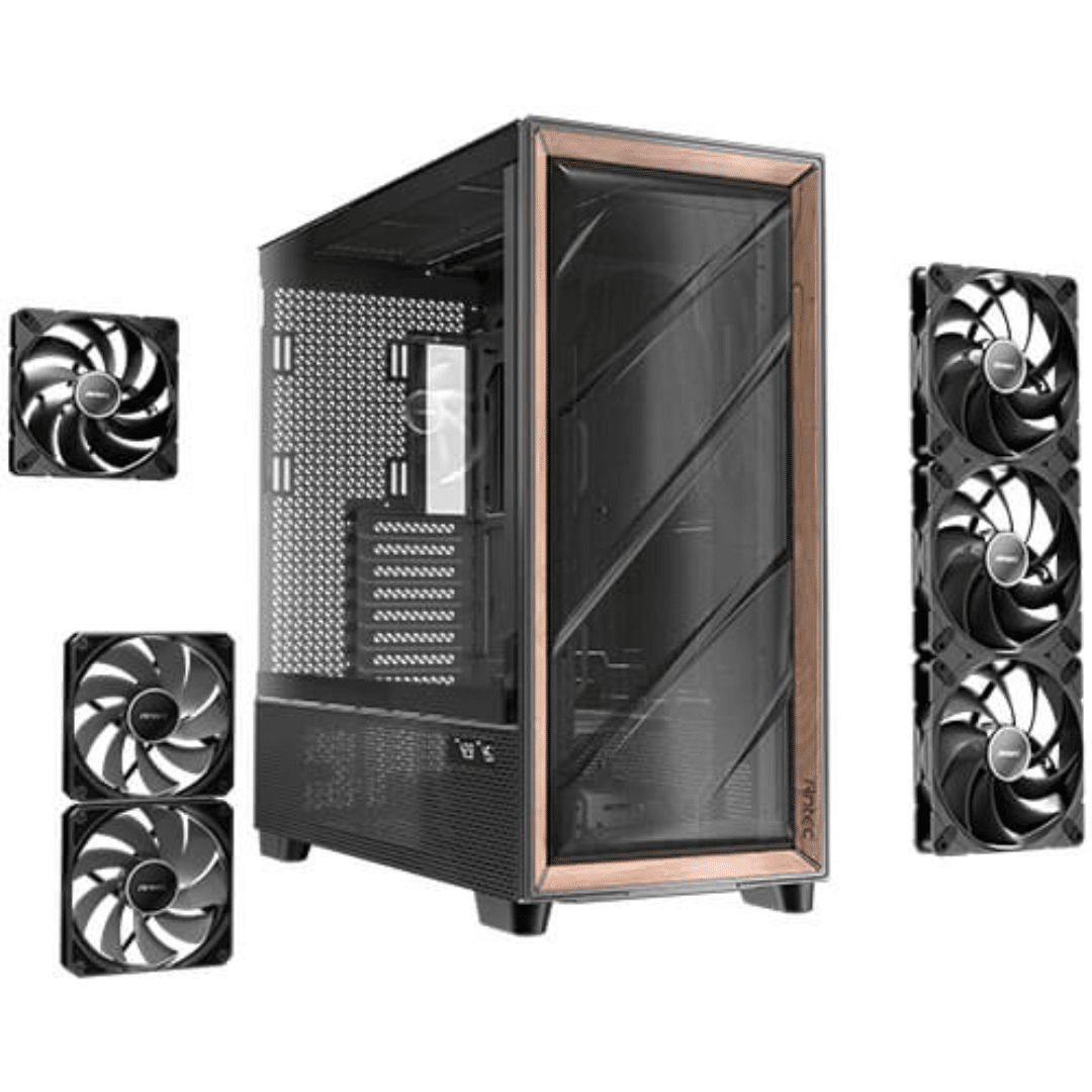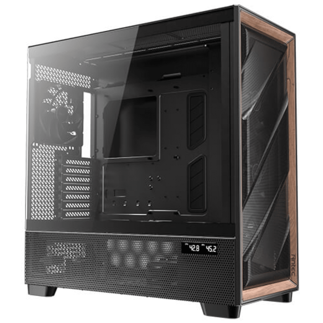 Antec Flux Pro, 6 X Pwm Fans Included, High-airflow Front Panel With Walnut Wood, Ishift Psu 90 Degree Mount, Usb3.0 X 2, Type-c, 420mm Radiator Support, Temp. Display, Full-tower E-atx Pc Case (black)