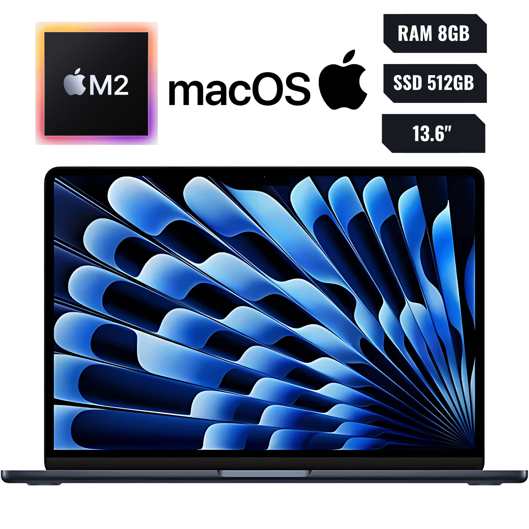 Apple Macbook Air 2022 M2 Chip 10-core 512gb Ssd 8gb 13.6″ (2560×1664) Liquid Retina Display Macos Monterey 12 Midnight Backlit Keyboard Retail Box – Mly43ll/a