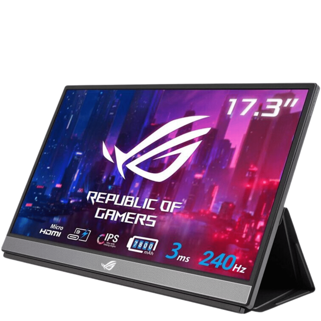 ROG Strix XG17AHPE Portable USB Type-C Gaming Monitor – 17.3-inch, IPS, FHD (FullHD, 1920×1080), IPS, 240Hz(Above 144Hz), 3ms response time, Adaptive-sync, Non-Glare, USB-C, Micro-HDMI, Built-in battery for laptop camera console, Smart case, Eyecare