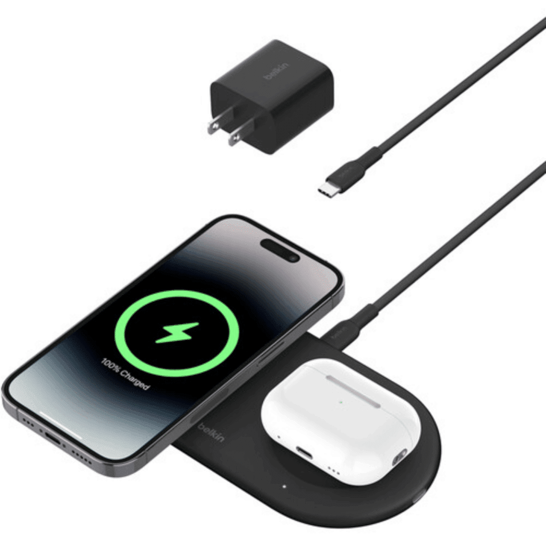 Belkin – Convertible Pad Stand – 15 Watt – Lithium – Para Universal – QI2 15W 2 in 1 PAD+USB-C 5W – Celulares – Baterías y Cargadores – WIZ021ttBK