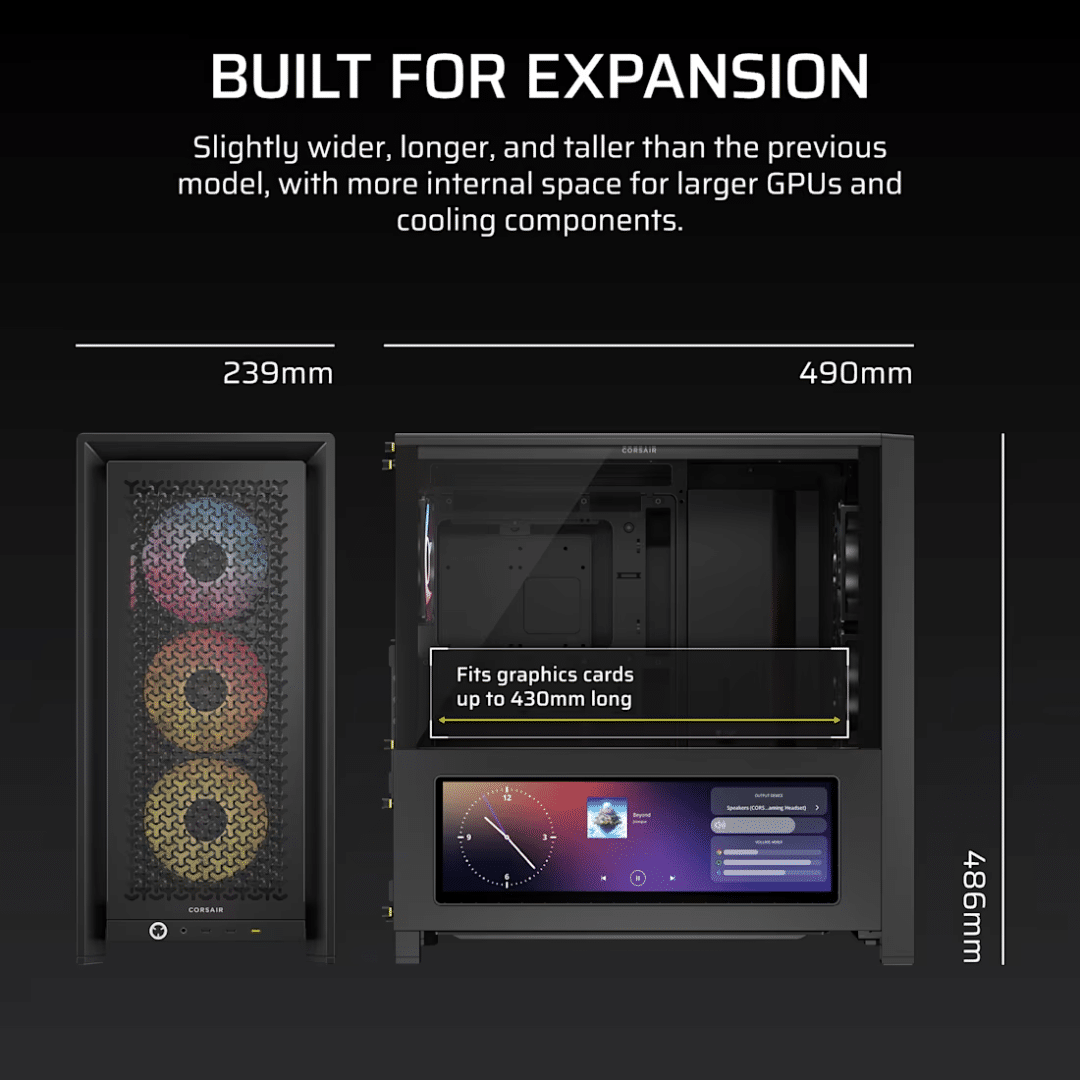 Case Corsair Atx 4000d Pantalla Tactil Xeneon 14.5 Tempered Glas Mid-tower Case N-ps 4ven-rgb Negro – Chasis – CC-9011326-WW