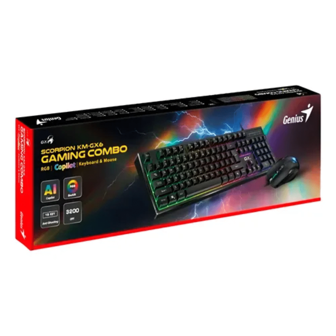 Combo/genius Usb Scorpion Km-gx6 Teclado K6 Y Mouse X1 /7 Colores Rgb / Copilot / Dpi 400-3200 – 091163262268 – 31330010401