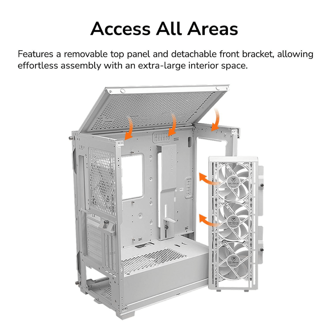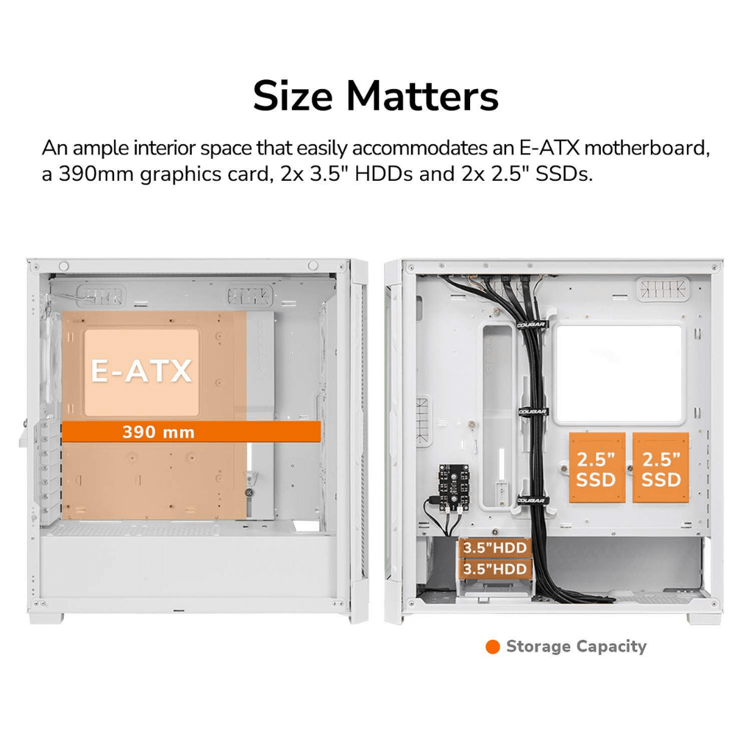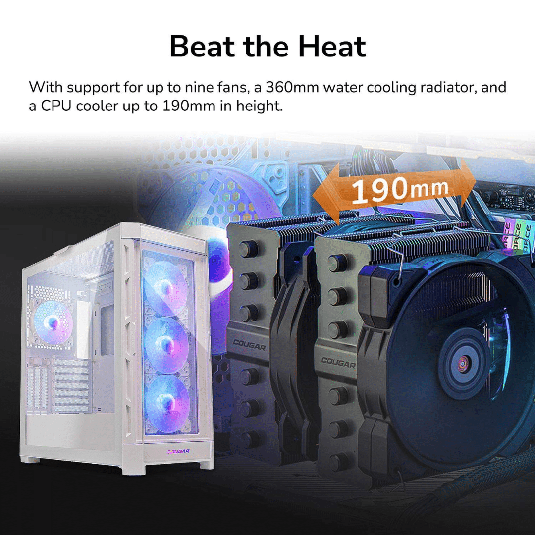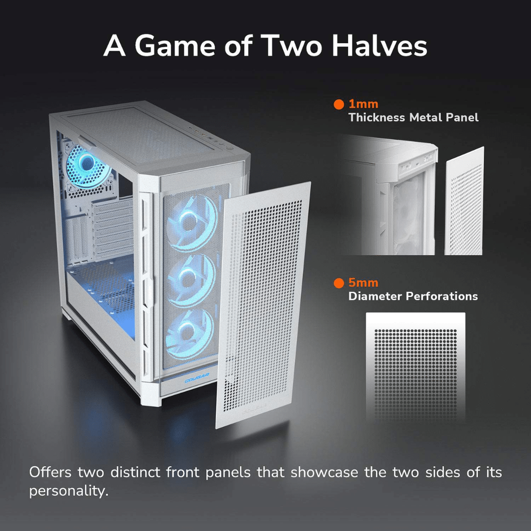 COUGAR Duoface Pro RGB White ATX Mid Tower Gaming Case, 390mm GPU Supported, Built-in Front 120mm ARGB Fan x3 & Rear 120mm ARGB Fan x1, With Mesh & Tempered Glass Front Panels – CS – CA-DUOFPRW – COUGAR – 192554005669 – DUOFACE PRO RGB WHITE