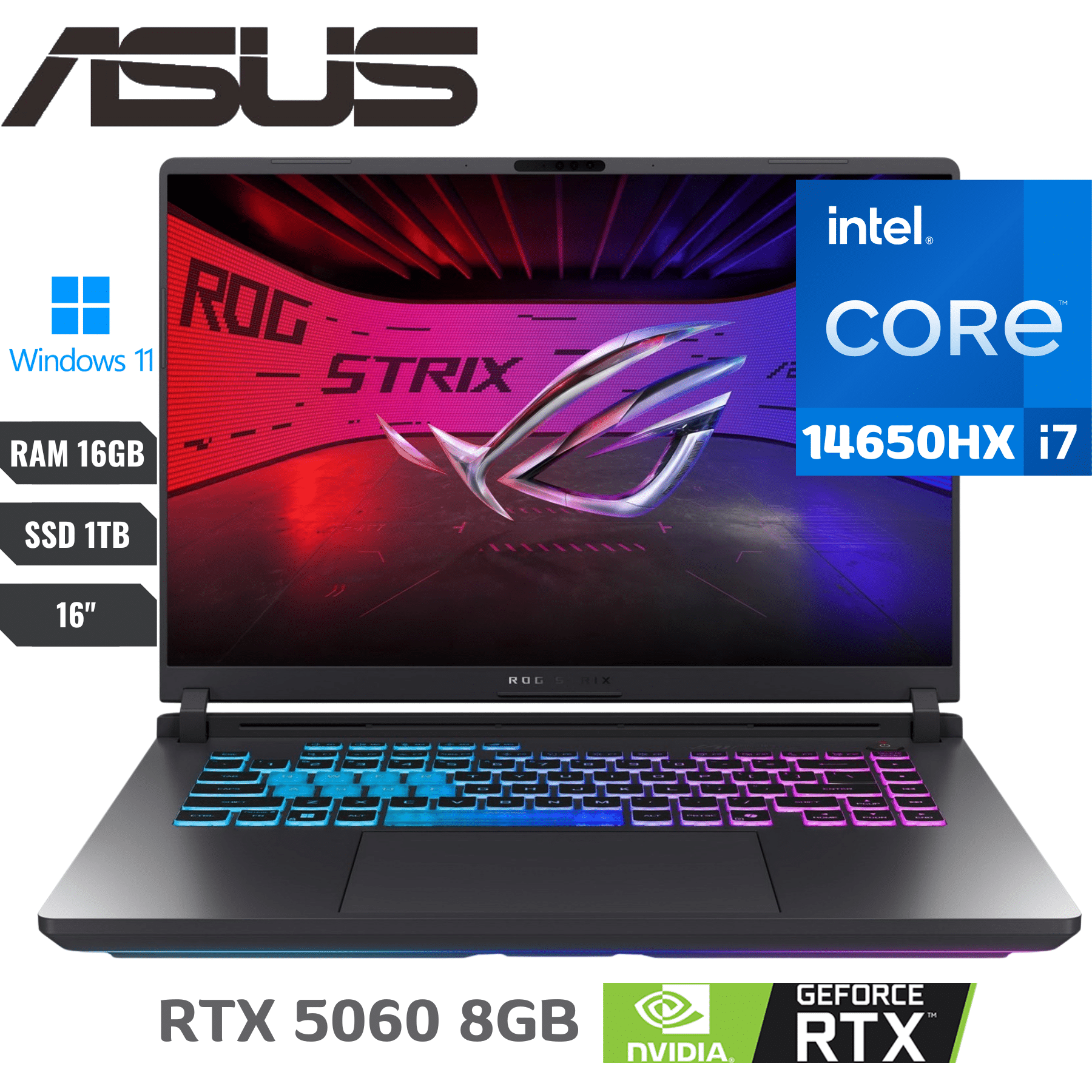 GRATISLaptop Asus Rog Strix G16 Intel Core I7-14650hx (14va) Ram 16gb Ddr5 Ssd 1tb Nvme 16″ (1920×1200) 3ms 165hz Win11 Nvidia® Rtx 5060 8192mb Eclipse Gray Backlit Keyboard Windows 11 Home Ingles – G615jmr-as74