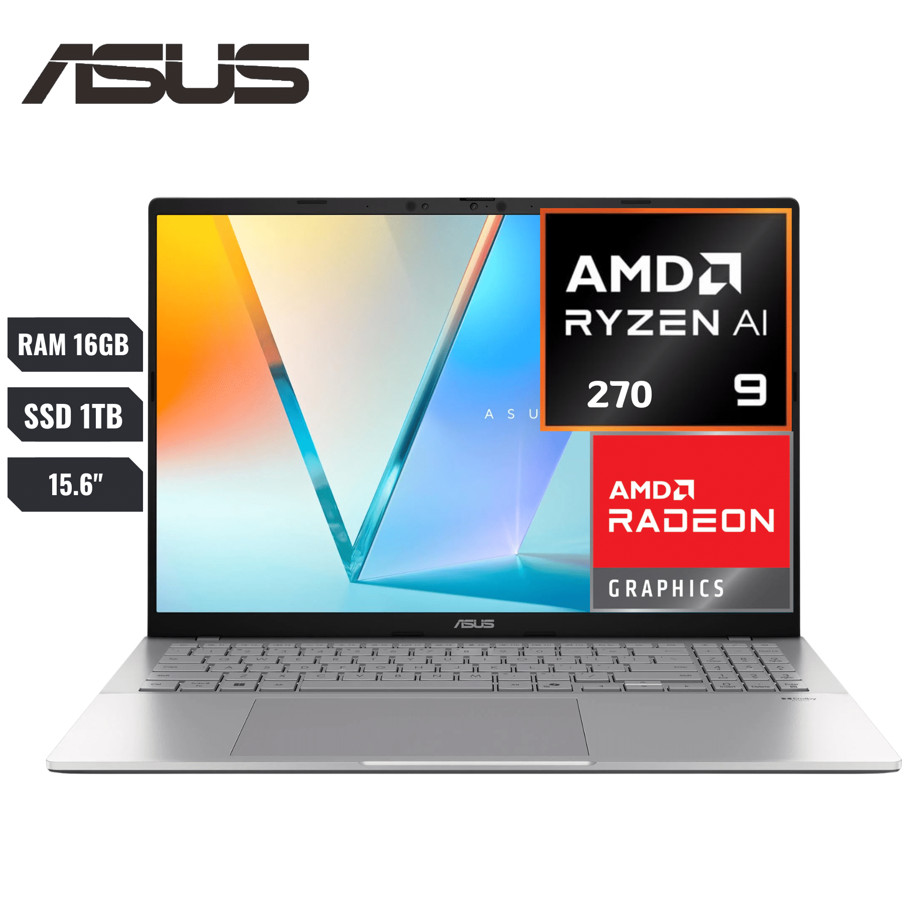 GRATISLaptop Asus Vivobook S16 M3607ha-rp063 Amd R9-270 (npu Up To 16tops)-4.0ghz Ram 16gb Ddr5 Ssd 1tb M.2 Nvme 16″ Wuxga 1920 X1200 Wifi 6e 1x Usb Tipo C 2 X Usb 3.2 1 X Usb 2.0 1 Hdmi 1 Jack 3.5mm EspaÑol Cool Silver Incluye Mochila Y Mouse –