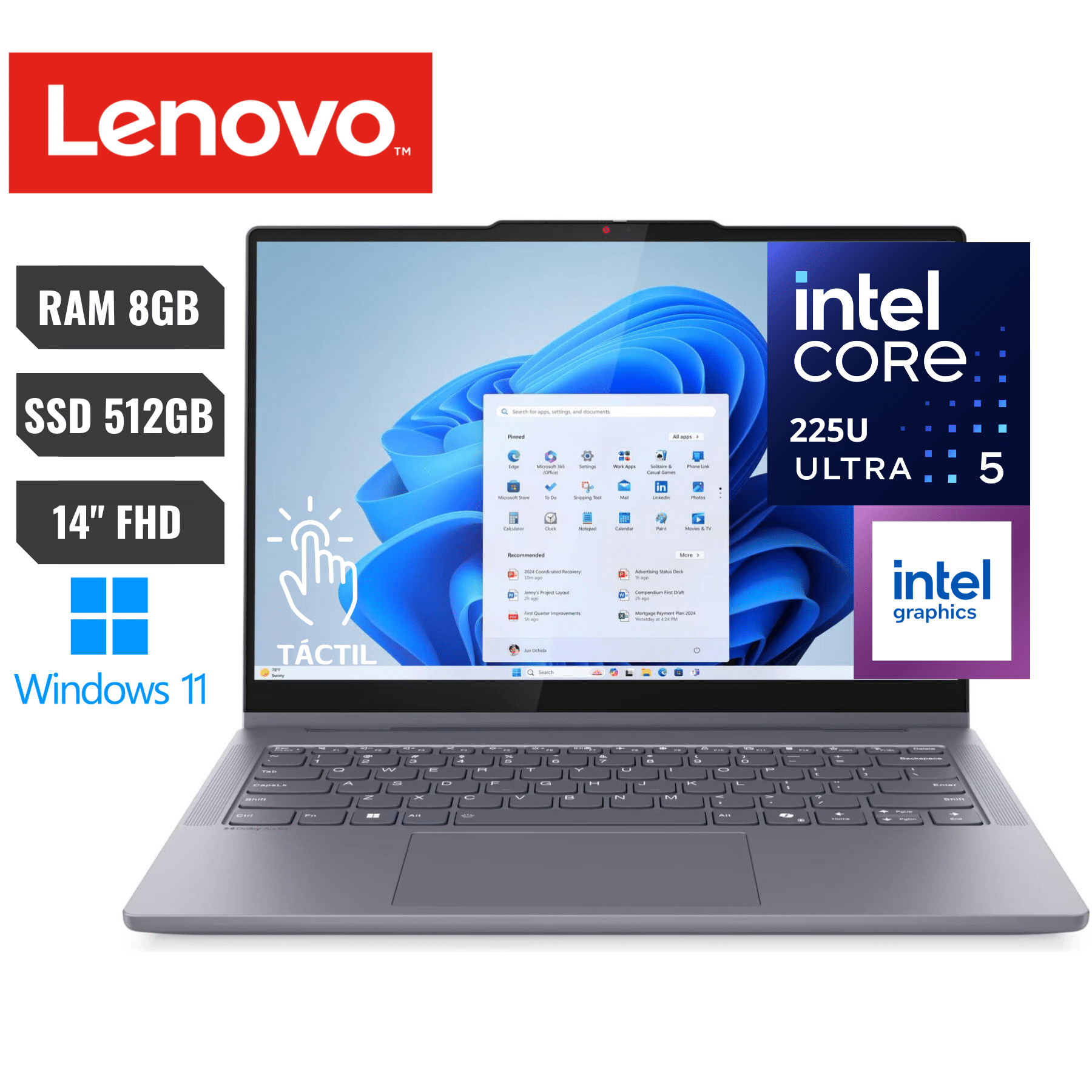 Laptop Lenovo 5 2-in-1 14ial10 Intel Core Ultra 5 225u 512gb Ssd Ram 8gb 14″ (1920×1200) *touchscreen* Windows 11 Home Luna Gray Teclado Retroiluminado – 83kr0047us