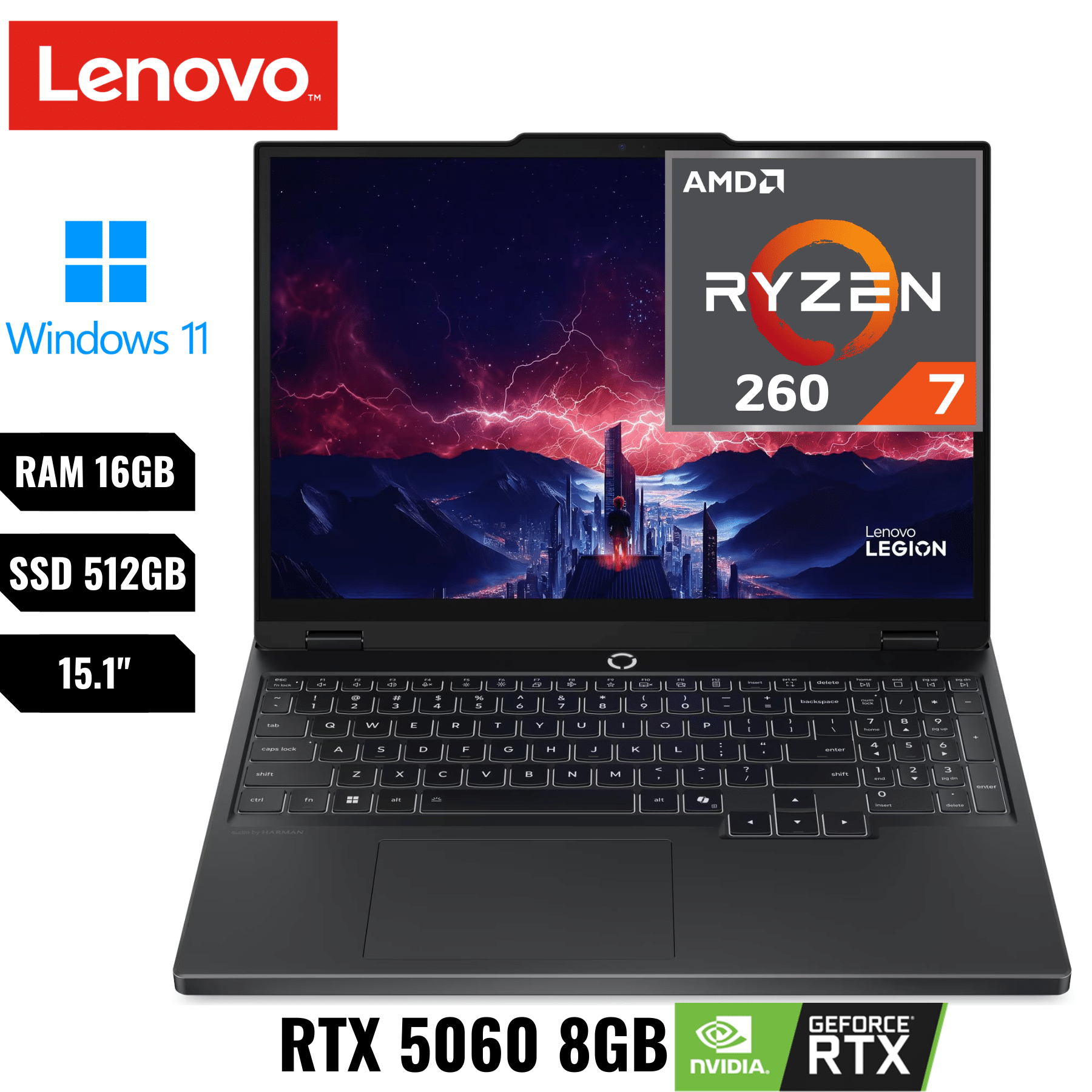 Lenovo Legion 5 15ahp10 Gaming Ryzen™ 7 260 512gb Ssd 16gb 15.1″ Wqxga (2560×1600) Oled 165hz Win11 Nvidia® Rtx 5060 8192mb Eclipse Black Rgb Backlit Keyboard – New Factory Sealed – 1 Year Manufacturer Warranty – 83M0004AUS