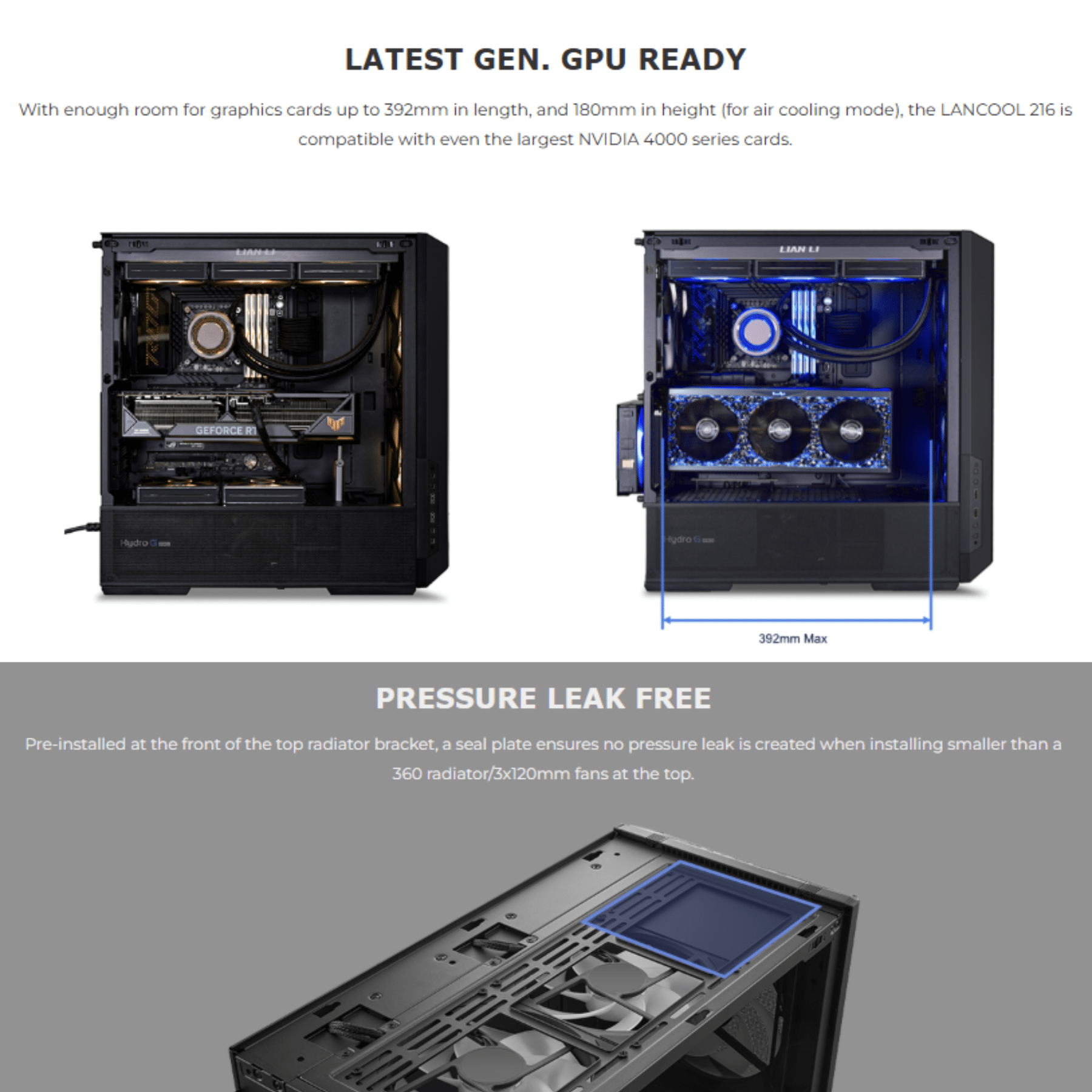 - GPU Length Clearance: 392mm (max)