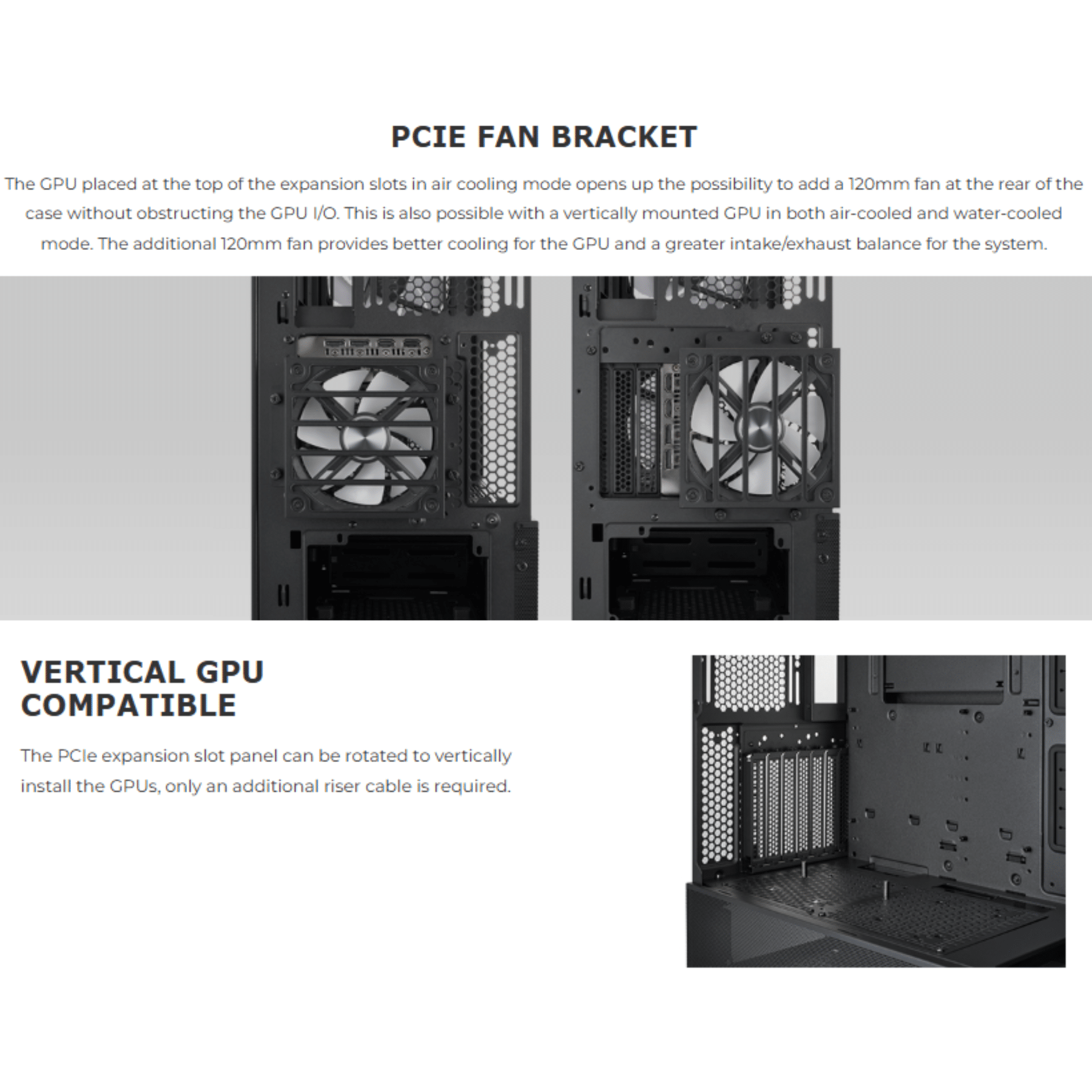 - PCIe Fan Bracket: 1 x 120mm