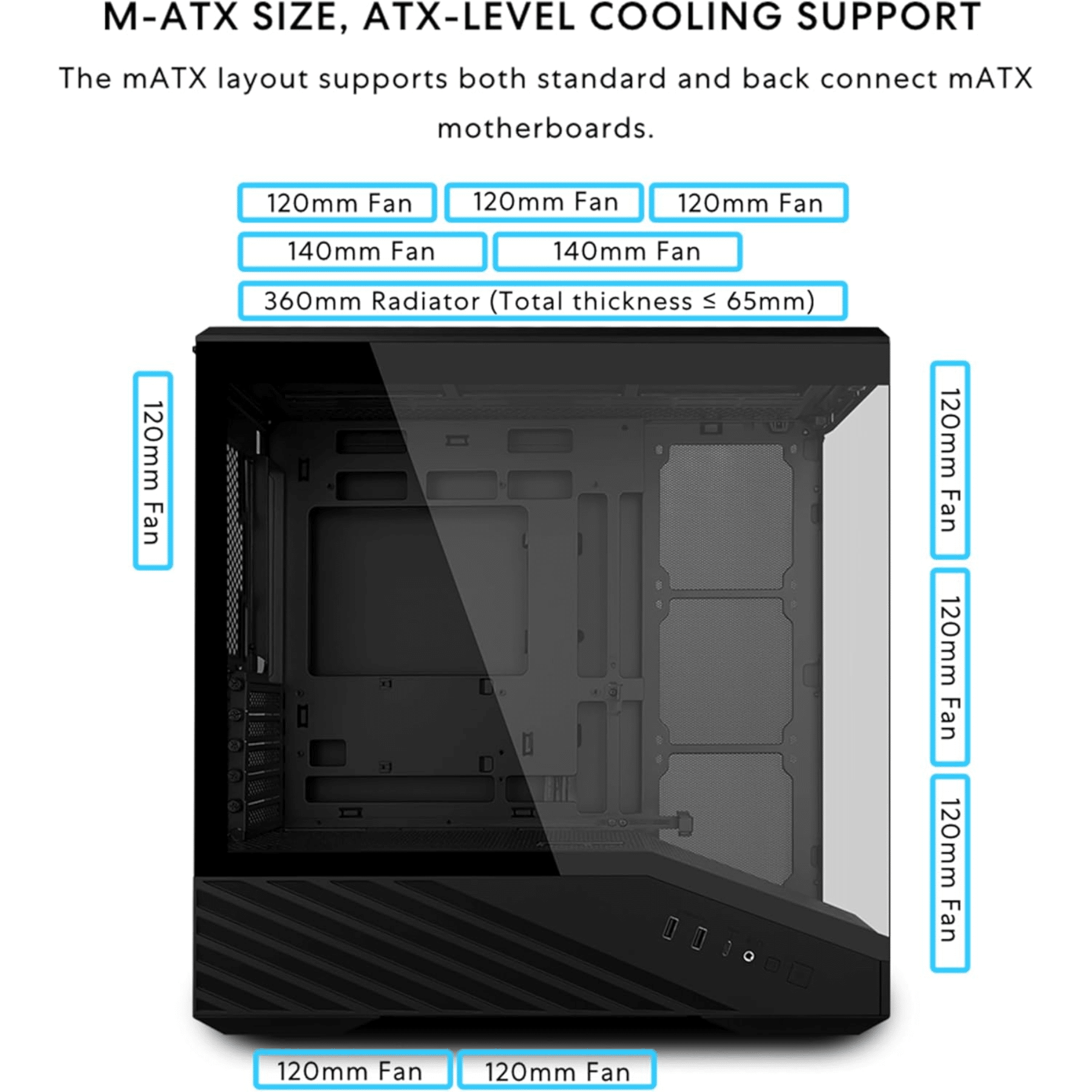 Lian Li Vector V100 Mini Micro Form Factor Compact Pc Case, Pre-install 4 X 120mm Argb Pwm Fans, Panoramic Tempered Glass, Support Backet-connect Micro-atx, 415mm Gpu, 360mm Radiator – Black(v100rmix)
