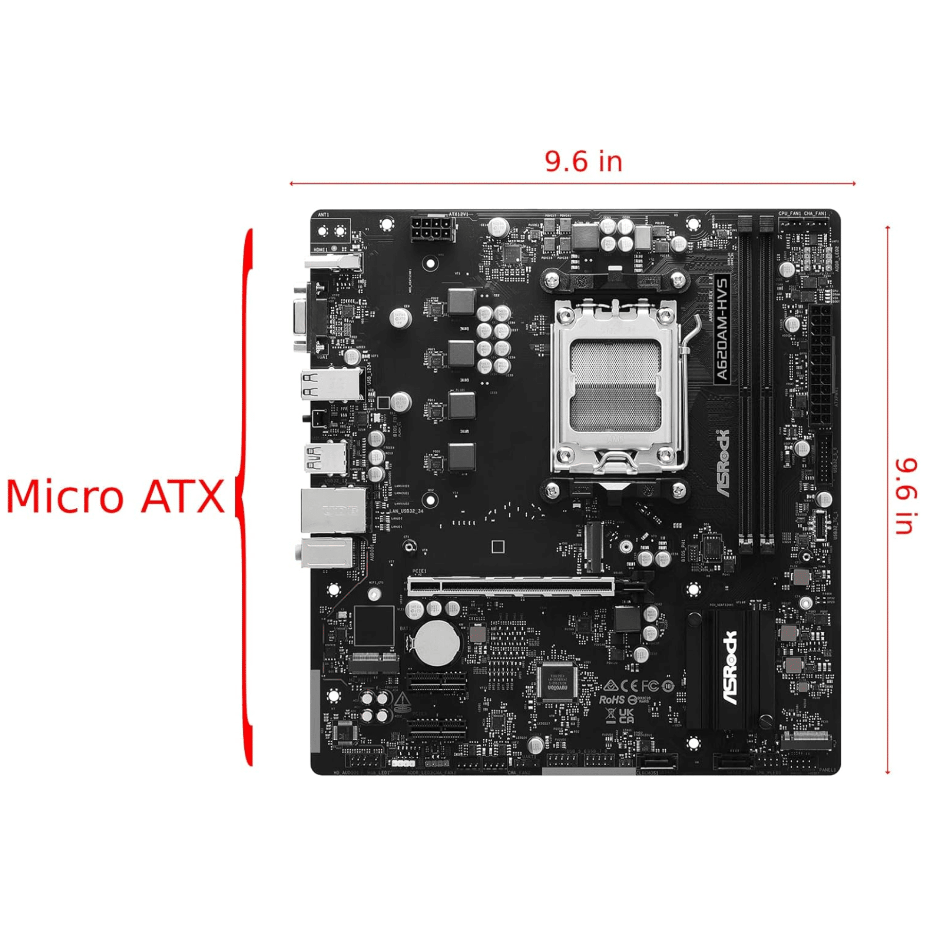 Mainboard Asrock A620am-hvs Amd Socket Am5 Ryzen 9000 2xddr5 D-sub Hdmi 2m.2 3usb3.2 Pcie4.0 Matx – Mother Board – 90MXBSR0-AQUAYAZ