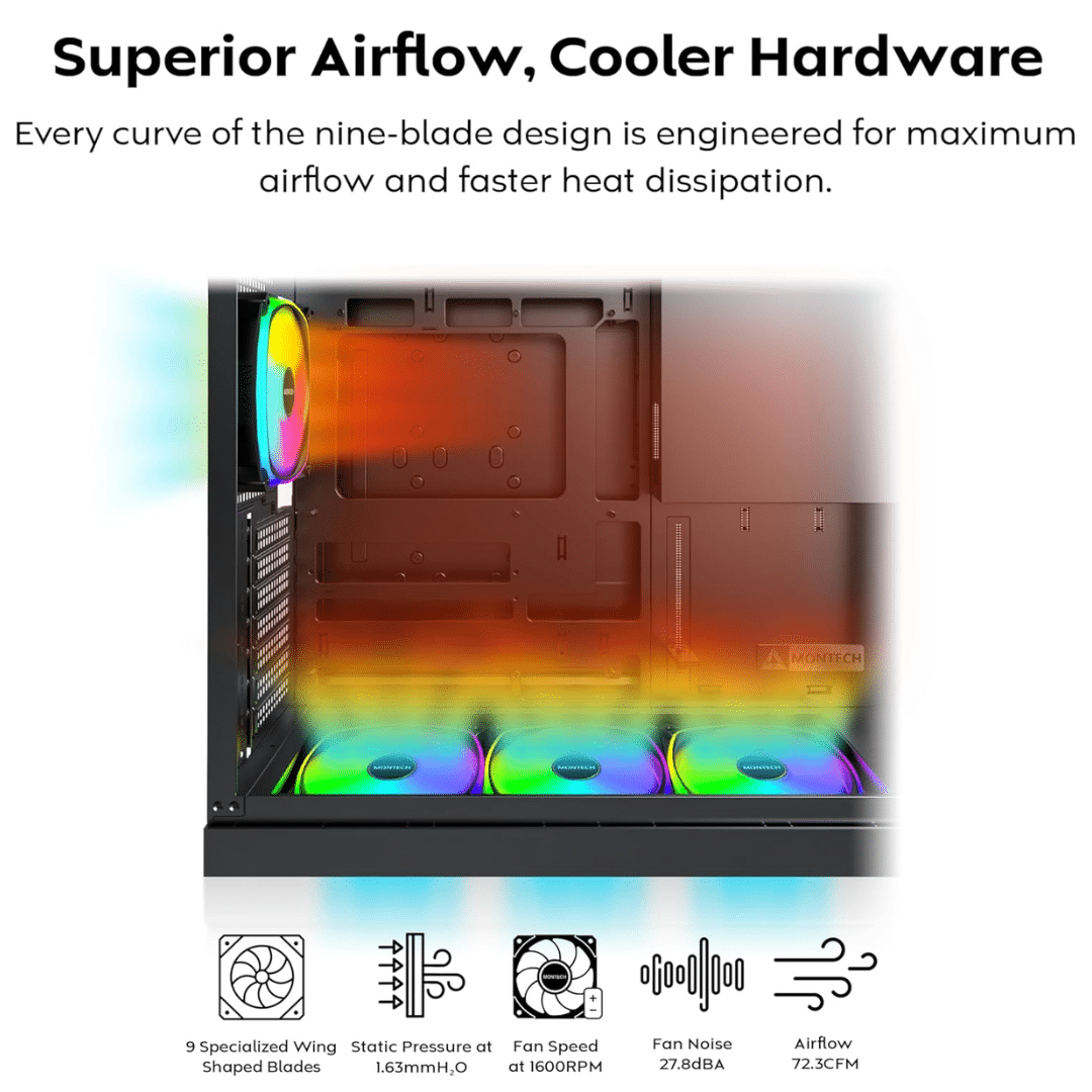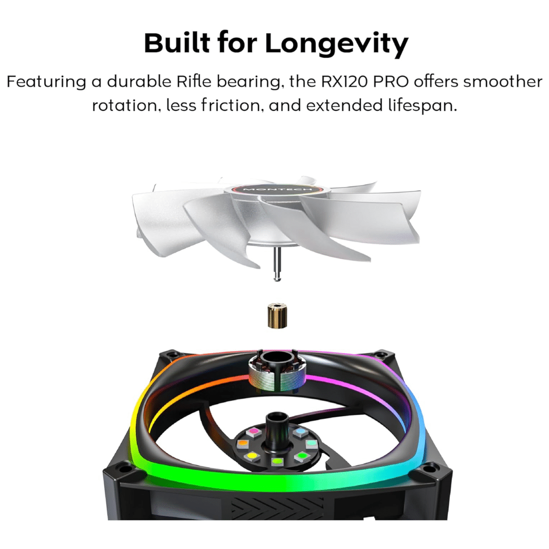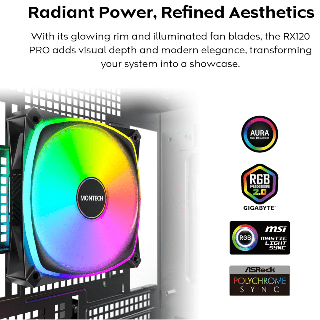 Montech RX120 PRO RX120PB 120mm ARGB Fan, 1600PWM, Black – FAN – FAN-RX1P5 – MONTECH – RX120PB