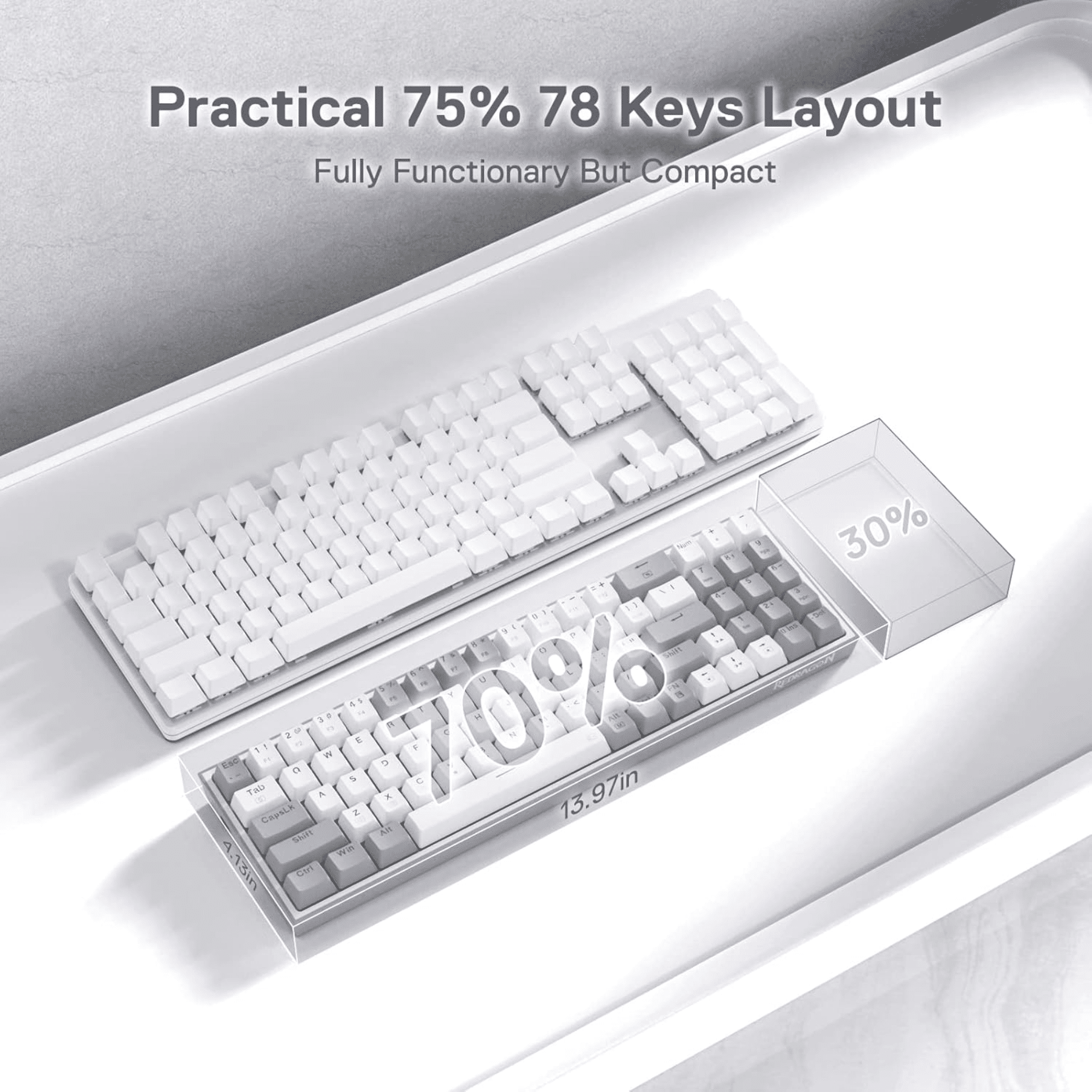 The Redragon K628 Pollux features a wired 78-key layout that offers the ultimate balance of compactness and functionality. With separate arrow keys and number keys, you’ll have everything you need at your fingertips. The 78-key layout also allows for the smoothest habit curve, so you can seamlessly transition from your old keyboard to the Redragon K628 Pollux.