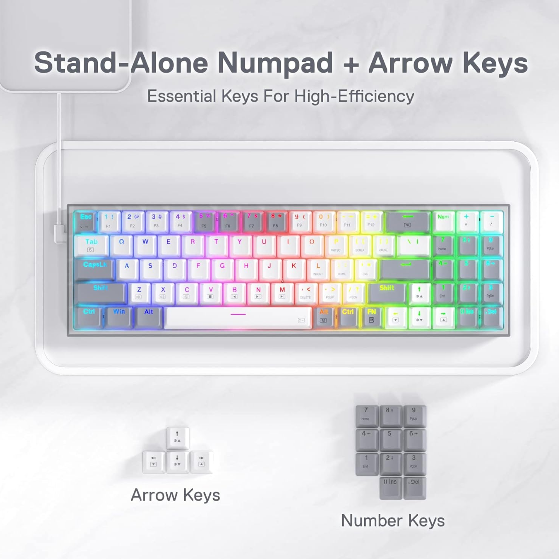 The keyboard’s sleek design features a mix of white and grey colors that will fit in with any desktop. And to add a personal touch, the Redragon K628 Pollux comes with an extra set of keycaps so you can customize your keyboard to your unique style
