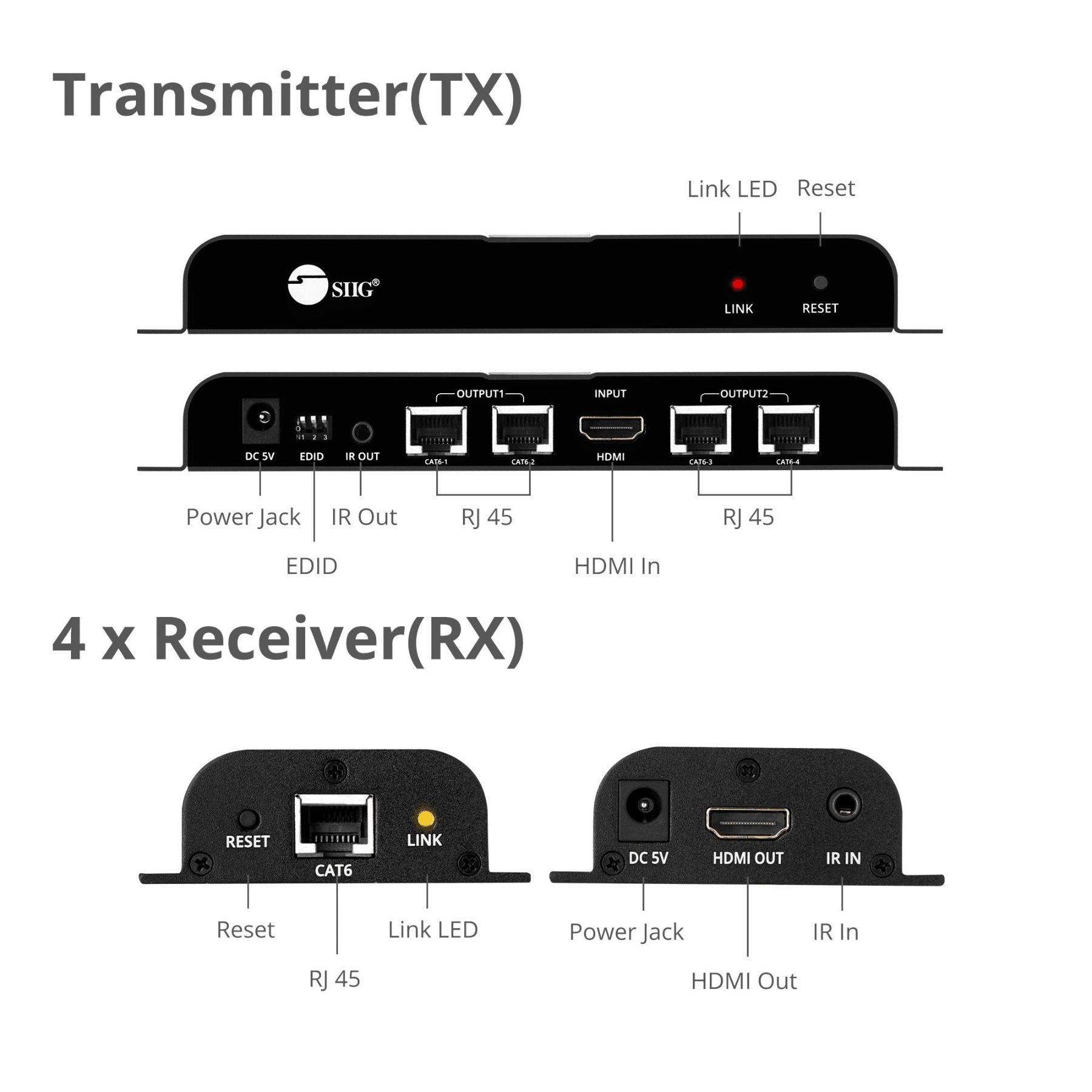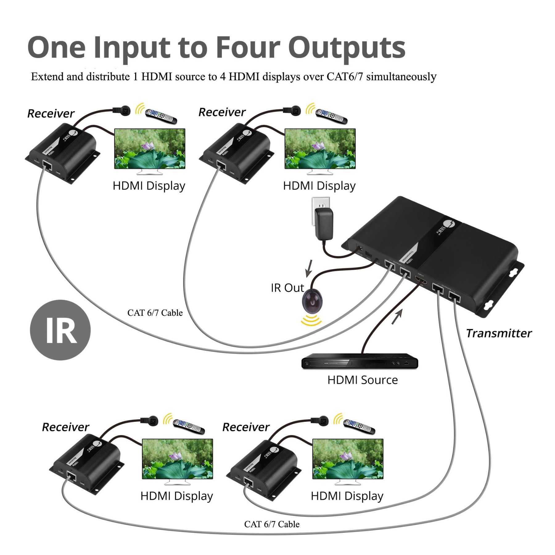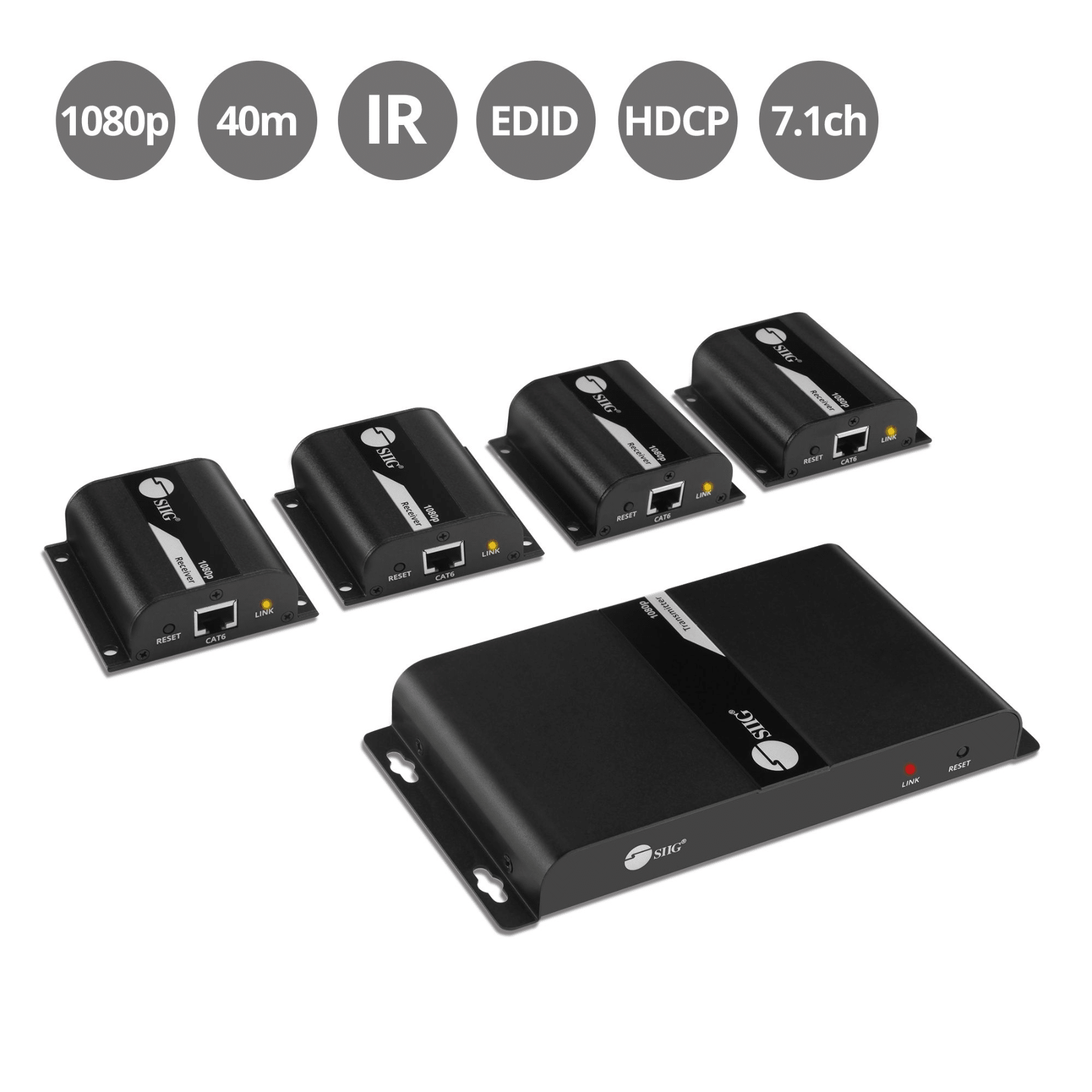 SIIG SIIG AC CE-H23U11-S1 4Port HDMI Splitter over Cat6 Extender with IR 40M AC 222244 CE-H23U11-S1