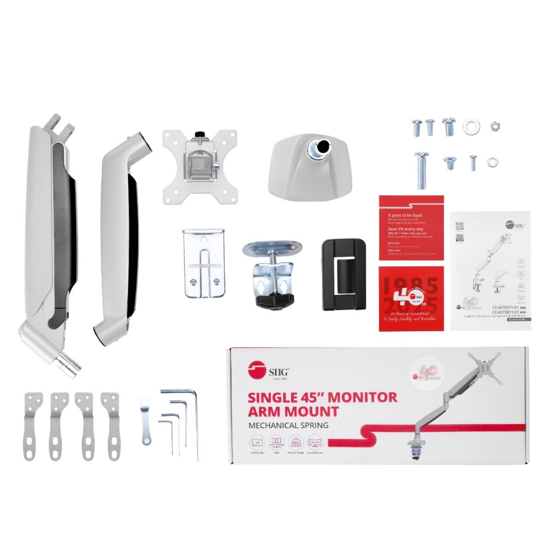 SIIG SIIG AC CE-MT5B11-S1 Single 45 inch Monitor Arm Mount 26.4 lbs gray Retail AC 303918 CE-MT5B11-S1