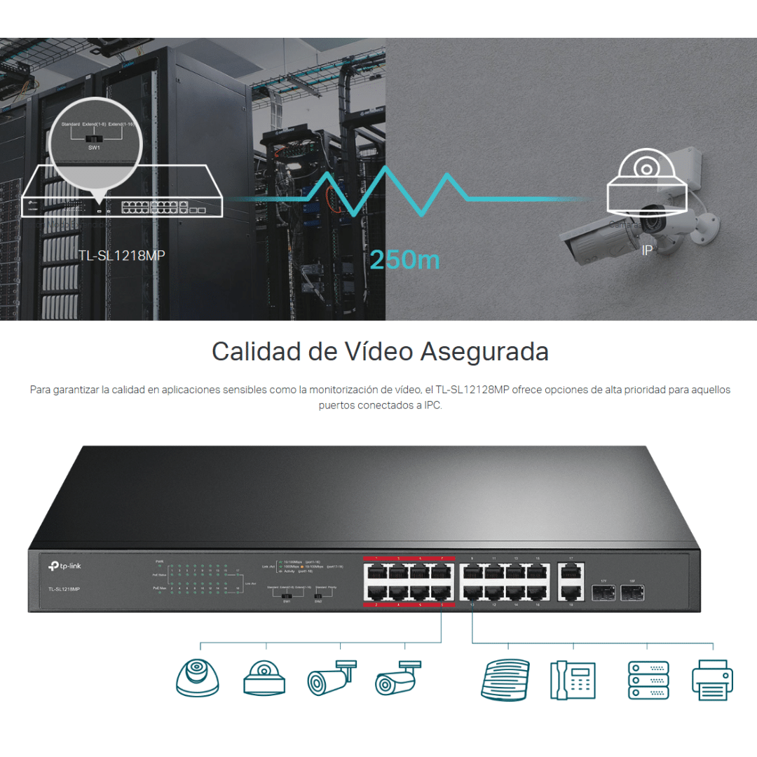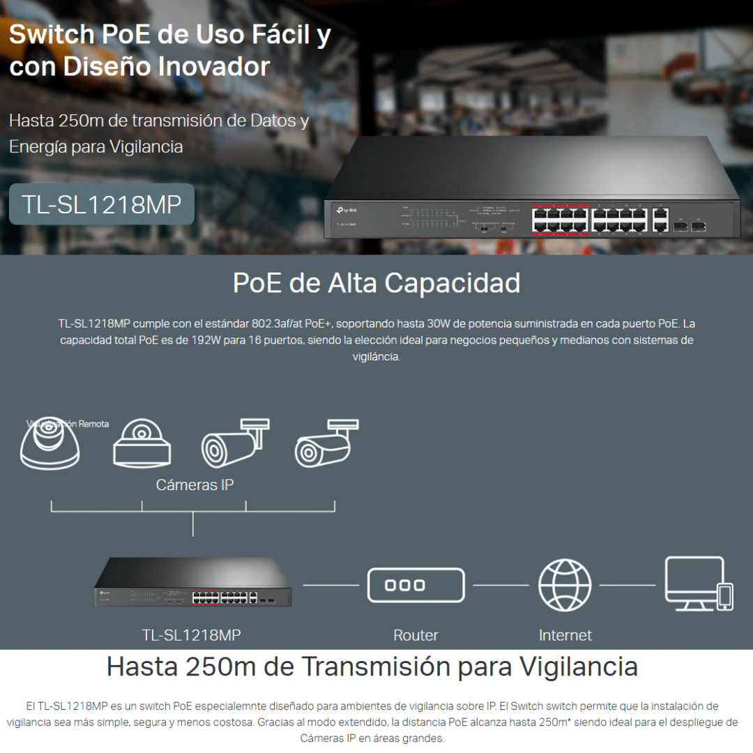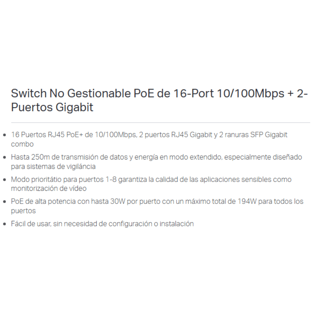 Switch Tp-link Tl-sl1218mp No Gestionable Poe 16port 10-100mbps 2p-sffp Gigabit – Switchs – TL-SL1218MP