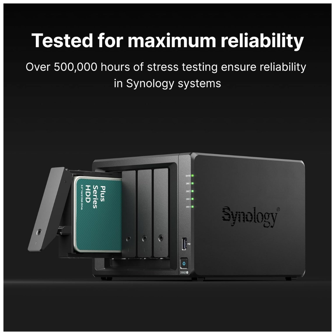 Synology Plus Series drives are subjected to thorough compatibility and stress testing to ensure smooth 24/7 operation under multi-user workloads.