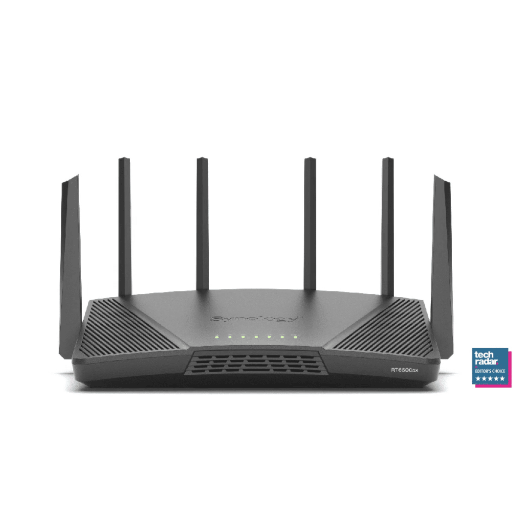 Built around the new Wi-Fi 6 standard, the RT6600ax tri-band router can deliver up to 6.6 Gbps in combined wireless throughput. The three radios work in tandem with the configurable 2.5GbE WAN/LAN port to ensure the maximum connection speed for each device. Powered by our constantly evolving Synology Router Manager operating system, the RT6600ax is designed to make securing and managing your network simple.
