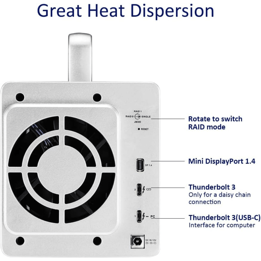 With aluminum casing and a built-in, temperature-controlled smart fan, TD2 Thunderbolt 3 ensures total heat dissipation. Therefore, it maintains an optimal working performance – all the time.