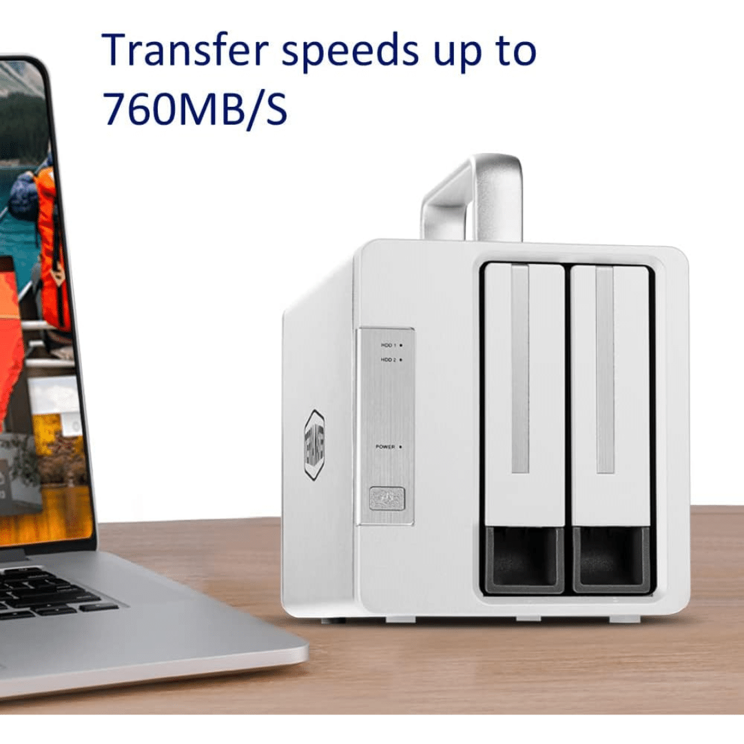 TD2 Thunderbolt 3 is equipped with two SATA hard drive slots. You can install two 3.5-inch or 2.5-inch hard drives or SSDs using these slots, offering a maximum storage space of 32 TB.