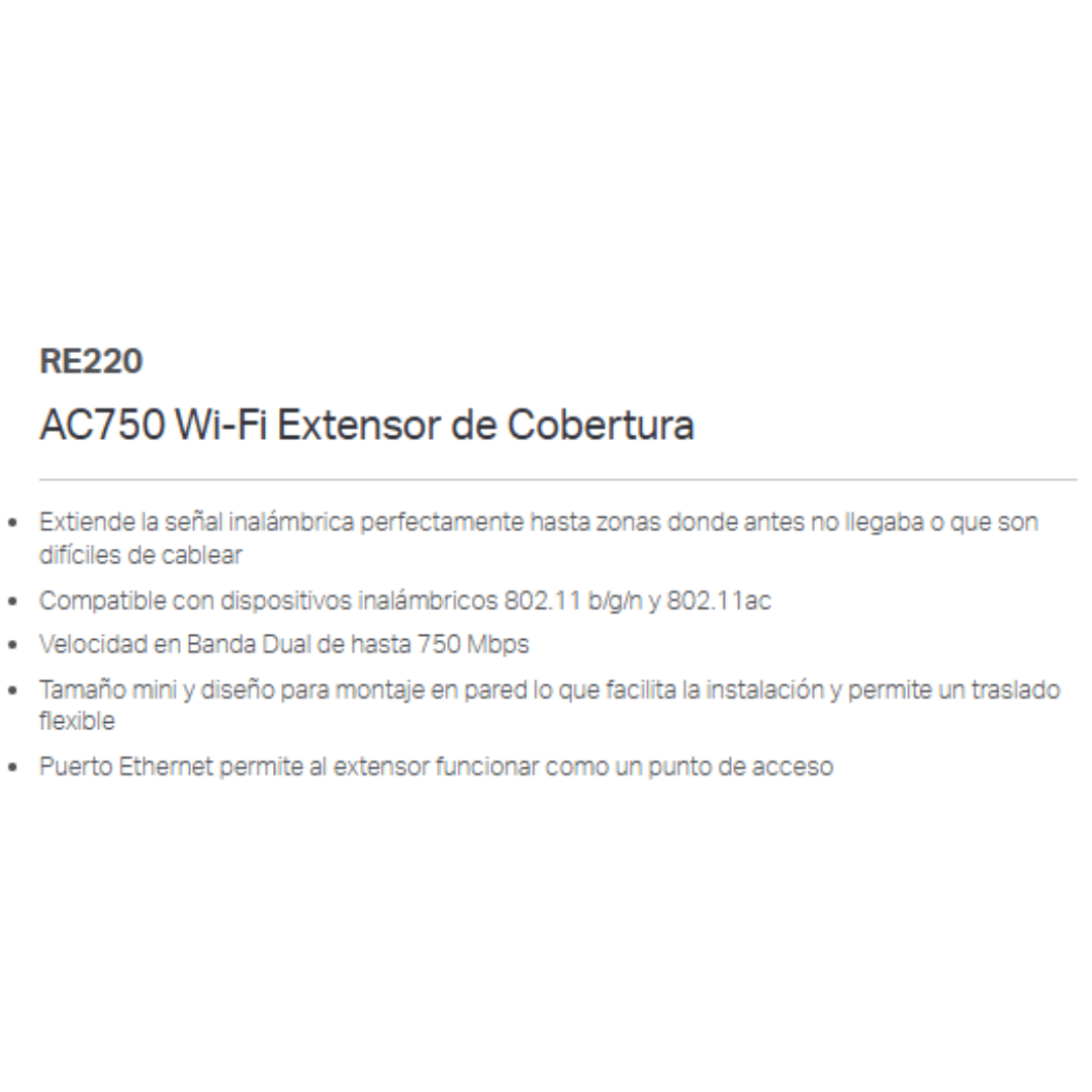 TP-Link TP-Link NT RE220 AC750 WiFi Range Extender Retail NT 239701 RE220