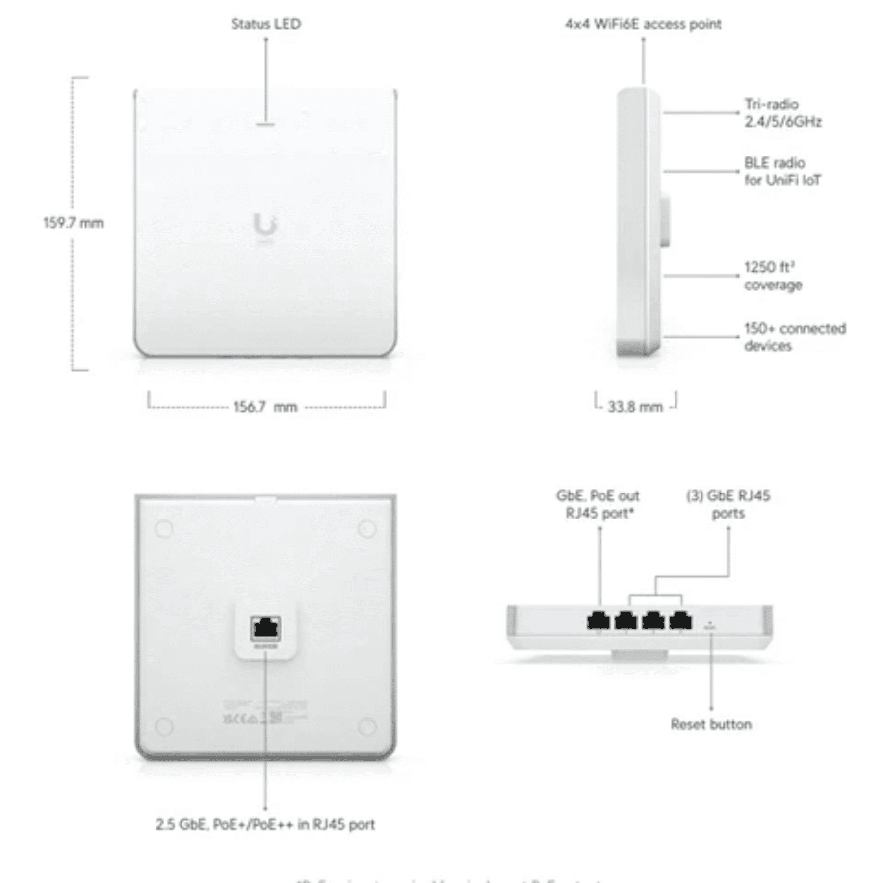 Ubiquiti UniFi U6 Enterprise – Punto de acceso inalámbrico – 4 puertos – Wi-Fi 6 – Wi-Fi 6E – 2.4 GHz, 5 GHz, 6 GHz – en pared – Redes – Puntos de Acceso – U6-ENTERPRISE-IW