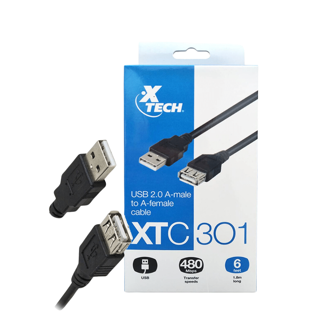 Xtech – USB cable – 1.8 m – 4 pin USB Type A – 4 pin USB Type A – USB 2.0 male-to-fem – Accesorios para Computadores – Cables – XTC-301