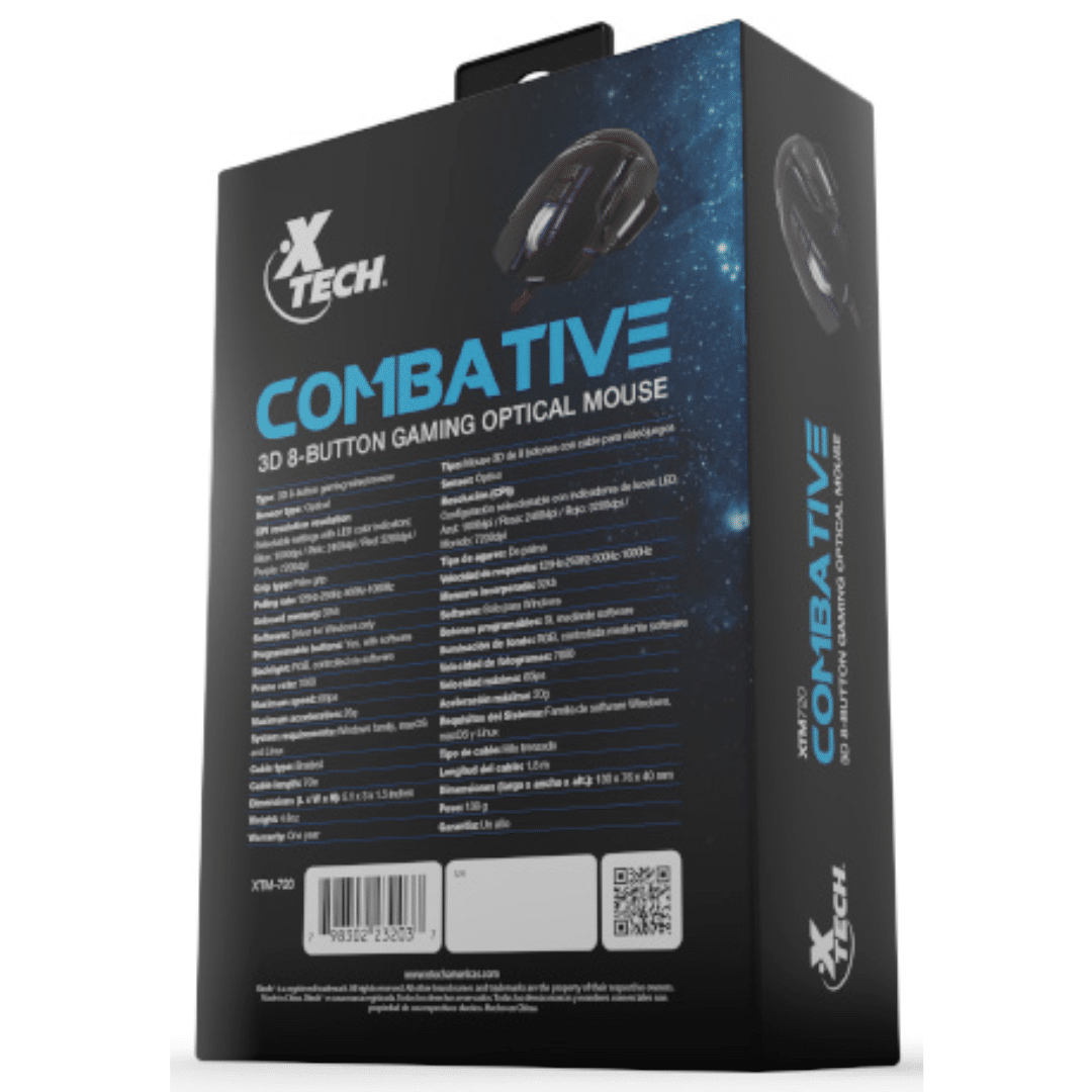 Xtech – XTM-720 – Mouse – USB – Wired – Black – Gaming 7200dpi – Periféricos – Ratones – XTM-720